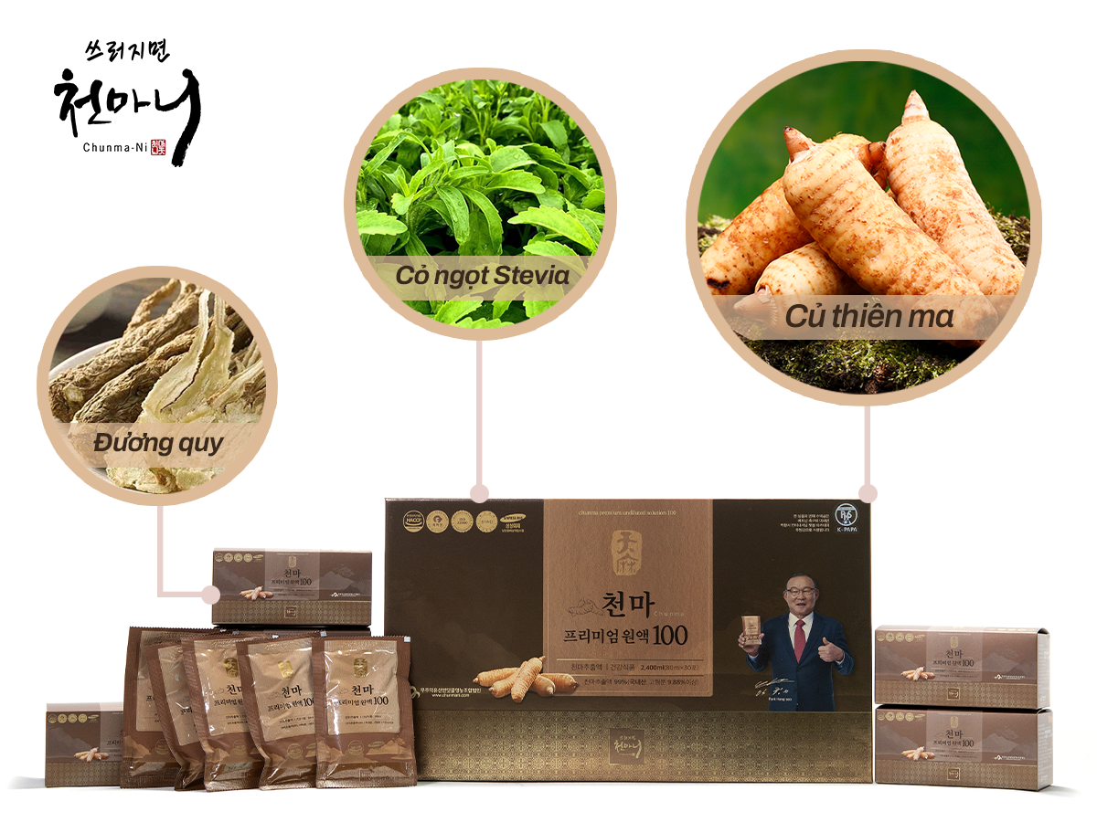 Vùng núi Muju Hàn Quốc là một nơi đặc biệt để Thiên Ma phát triển và sinh trưởng. Và sản phẩm Thiên Ma Chunmani Premium 100 với chiết xuất 99% củ Thiên Ma từ việc nuôi trồng canh tác cho đến áp dụng công nghệ tiên tiến theo quy trình khép kín để sản xuất ra được sản phẩm chăm sóc sức khỏe phù hợp cho các tình trạng như trên; cũng như, việc chú trọng đến vị ngọt thanh tự nhiên từ cỏ ngọt Stevia và hương vị đương quy mang đến người dùng khẩu vị ngon miệng hơn.